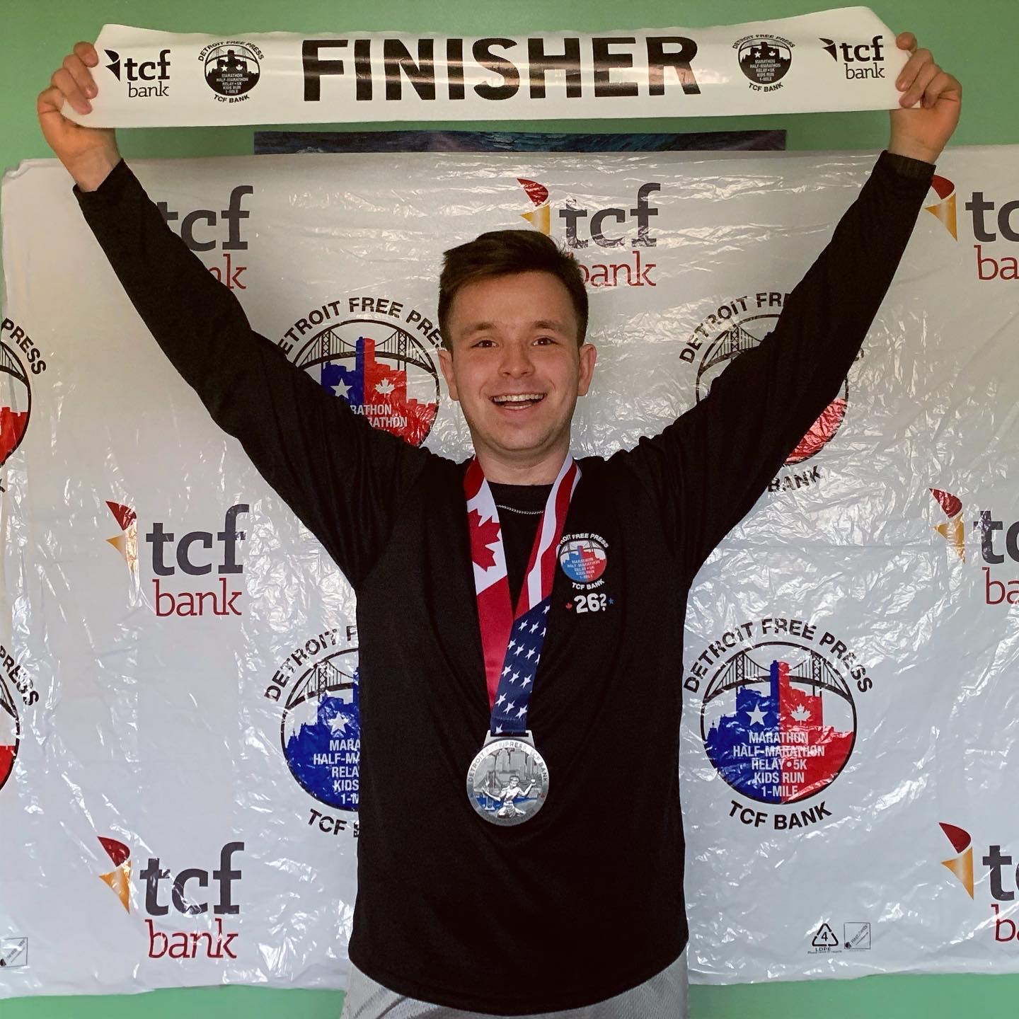 Tim after running the 2020 Detroit marathon.